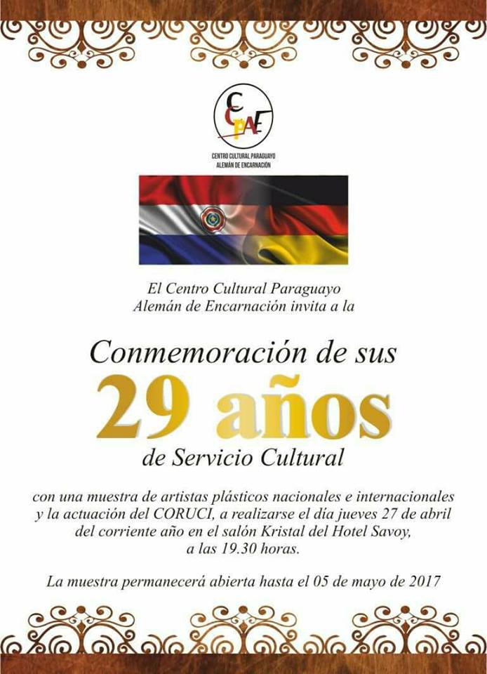 El programa de conmemoración de los 29 años de servicio cultural del CCPAE fue desarrollado en el hotel Savoi de Encarnación entre los días 27 de abril y 5 de mayo del 2017.
